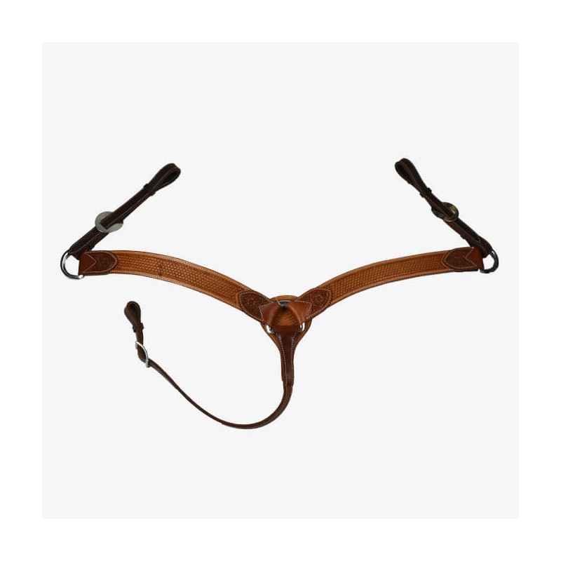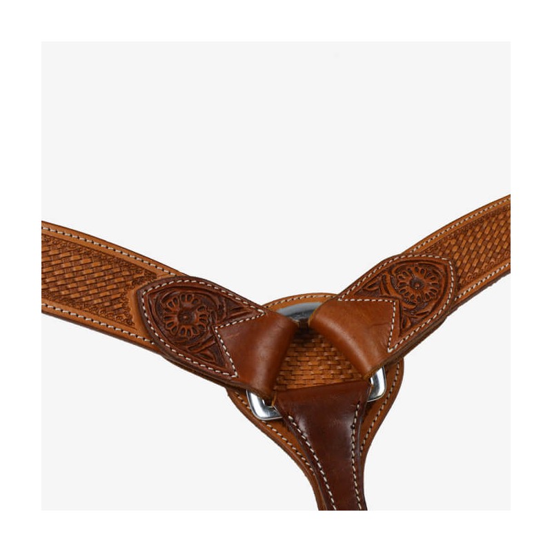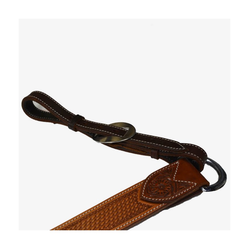 Difficile de se décider entre deux couleurs de cuir ? Ce collier de chasse résout le problème ; deux couleurs, cousu et doublé, décoré de tooling basket, avec boucleries en acier inoxydable.