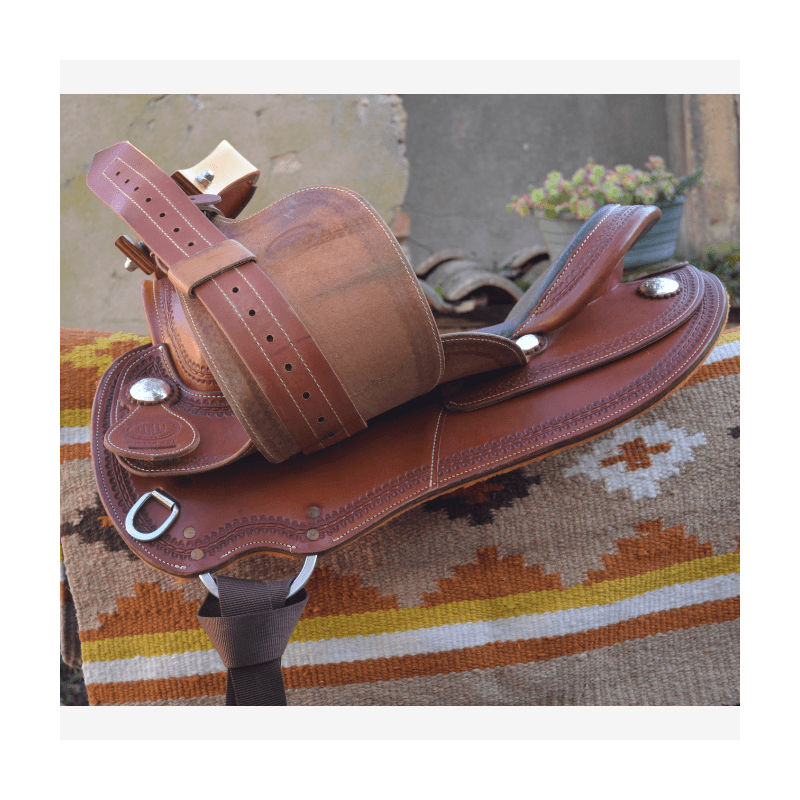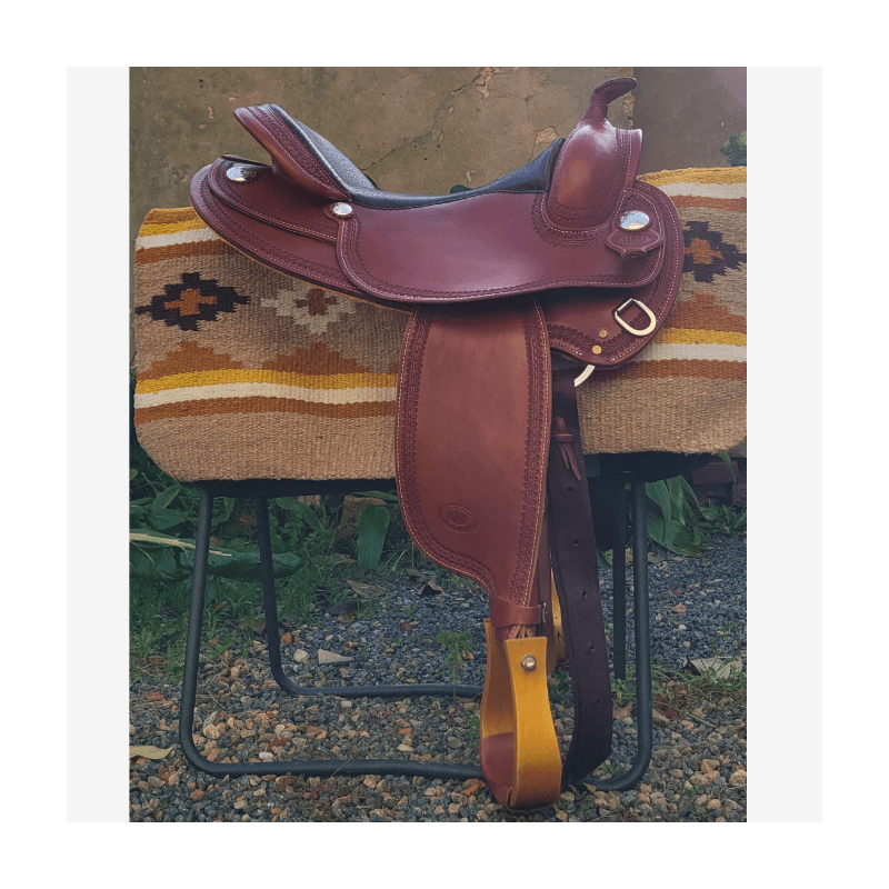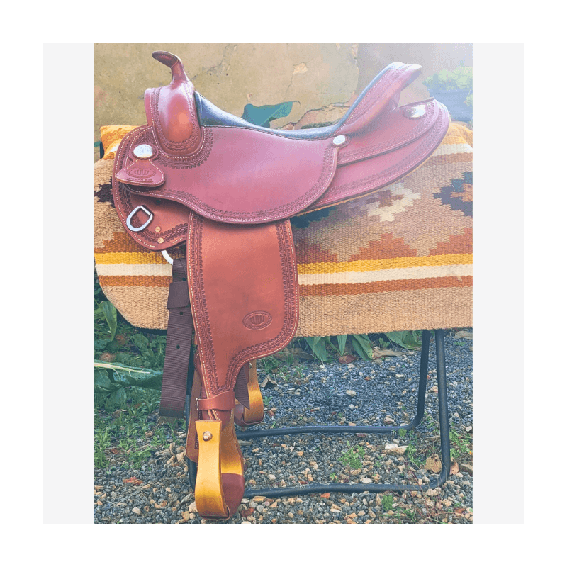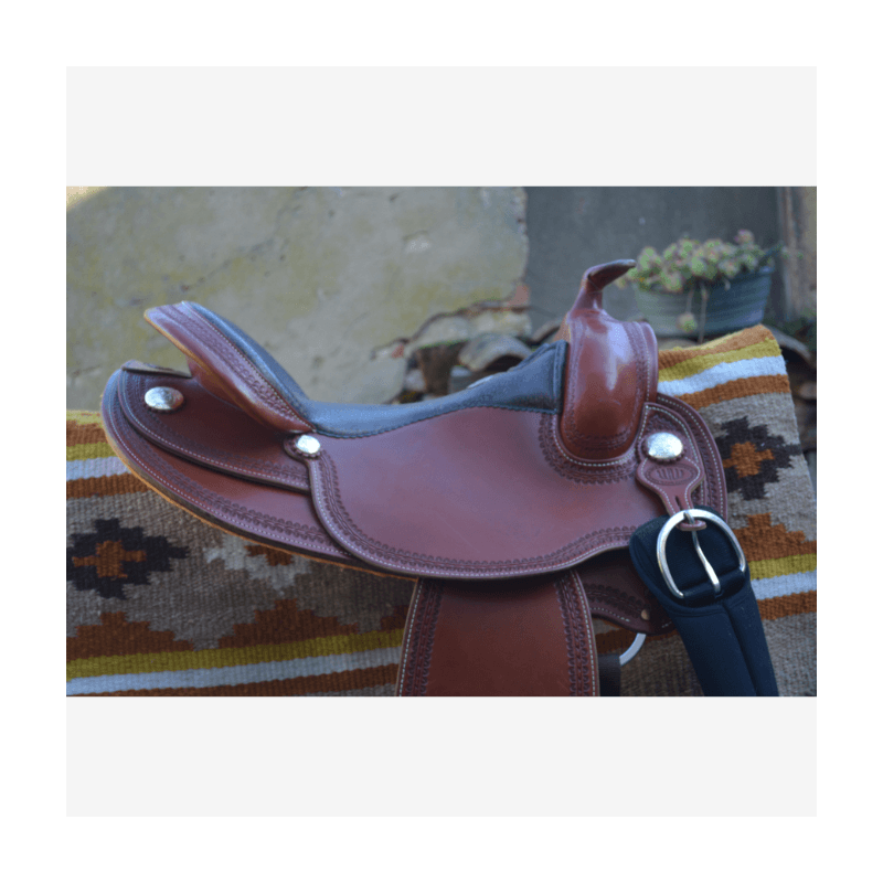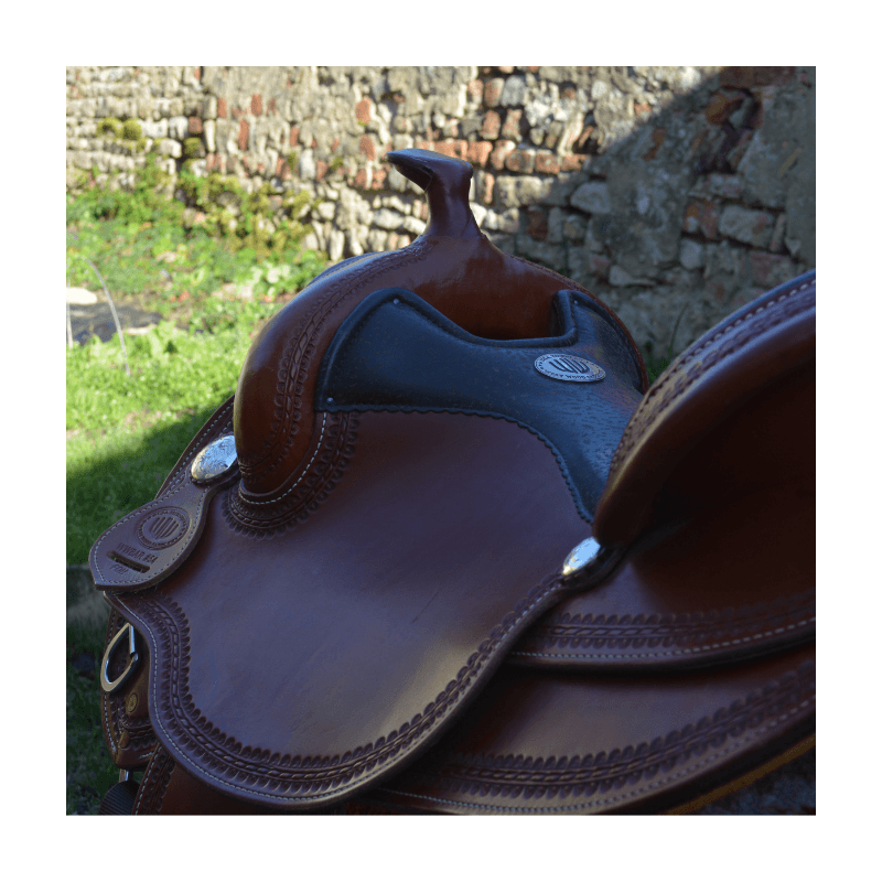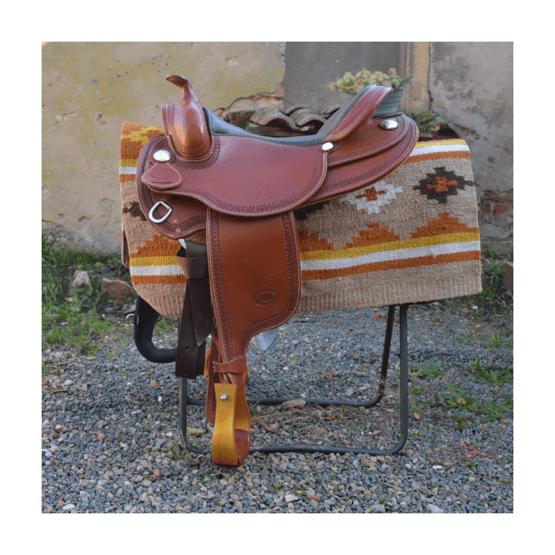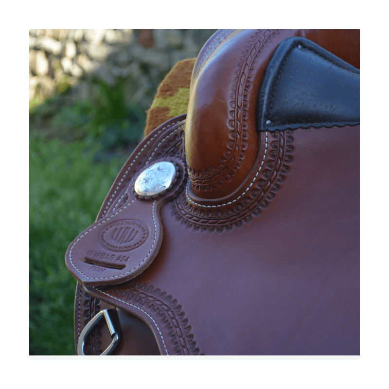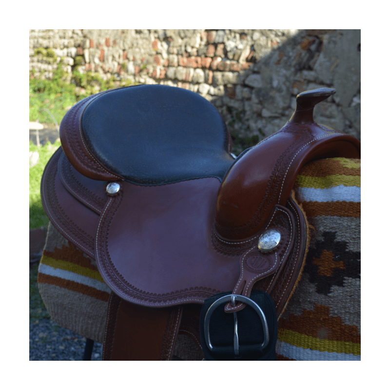 Superbe selle western WestWood Butterfly, conçue pour offrir un excellent confort au cavalier comme au cheval. Etriers en bois pour un confort optimal. La selle est roundskirt, idéale pour les chevaux courts, avec un rock prononcé.