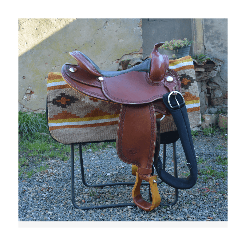 La selle est vendue avec une sangle en néoprène.